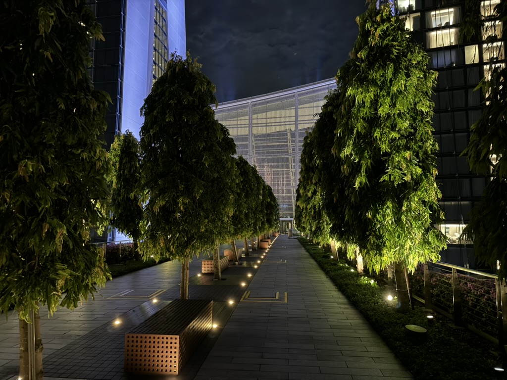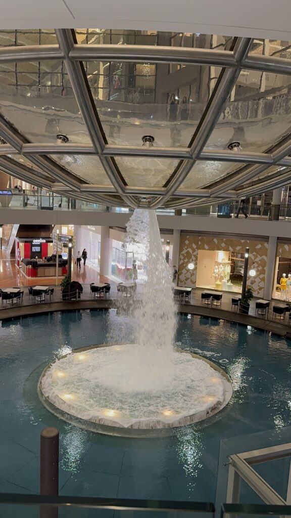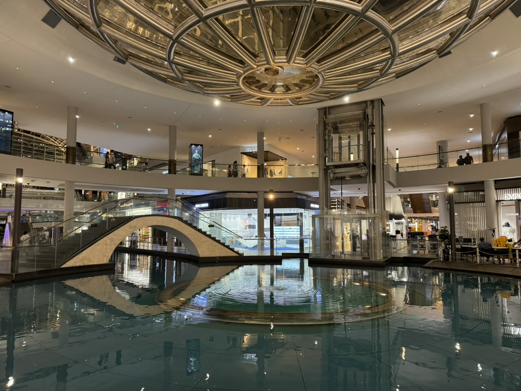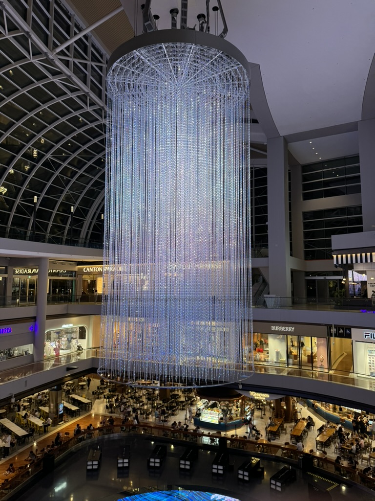 Nach meiner Fahrt im Singapore Flyer wollte ich mich auf den Weg zu den Gardens by the Bay machen. Von oben konnte ich mir bereits einen guten Überblick verschaffen, allerdings unterschätzte ich die Länge des Weges. Damit ich mich nicht wieder verlief, gab ich den Weg diesmal direkt ins Navi ein. Mein Bauchgefühl hätte mich zwar in die richtige Richtung geleitet, dennoch war ich froh, mich leiten zu lassen – besonders, da der Weg durch ein Einkaufszentrum führte. Selten hatte ich ein so ordentliches Einkaufszentrum gesehen: Alles wirkte makellos, und der Boden spiegelte. Es gab coole Lichtspielereien und viele Luxusgeschäfte. Auch hier gab es eine Art Hawker Center, das jedoch ebenfalls auf Hochglanz poliert war.