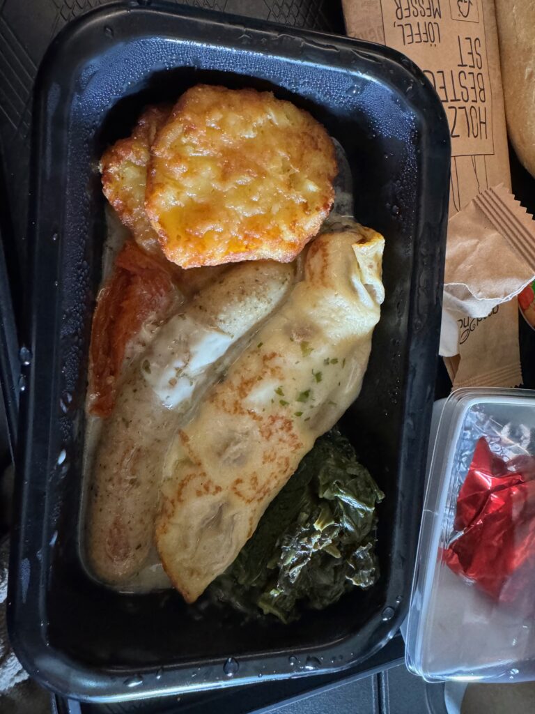 Irgendwann wurde es langsam wieder heller und es wurde Frühstück serviert, auch das war wieder besser als es aussah. Danach ging es auch schon recht bald in den Landeanflug.